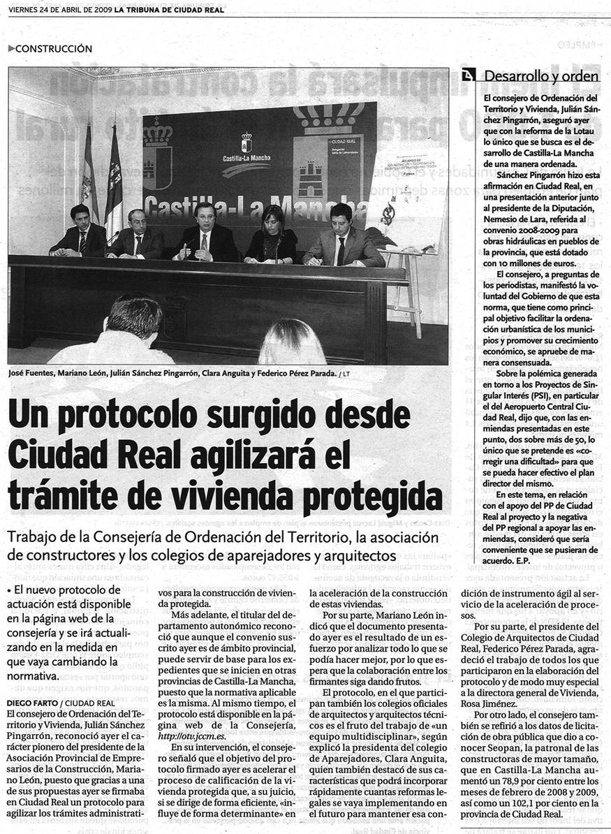 El Colegio de Arquitectos firma el Protocolo para Viviendas Protegidas en Ciudad Real | |