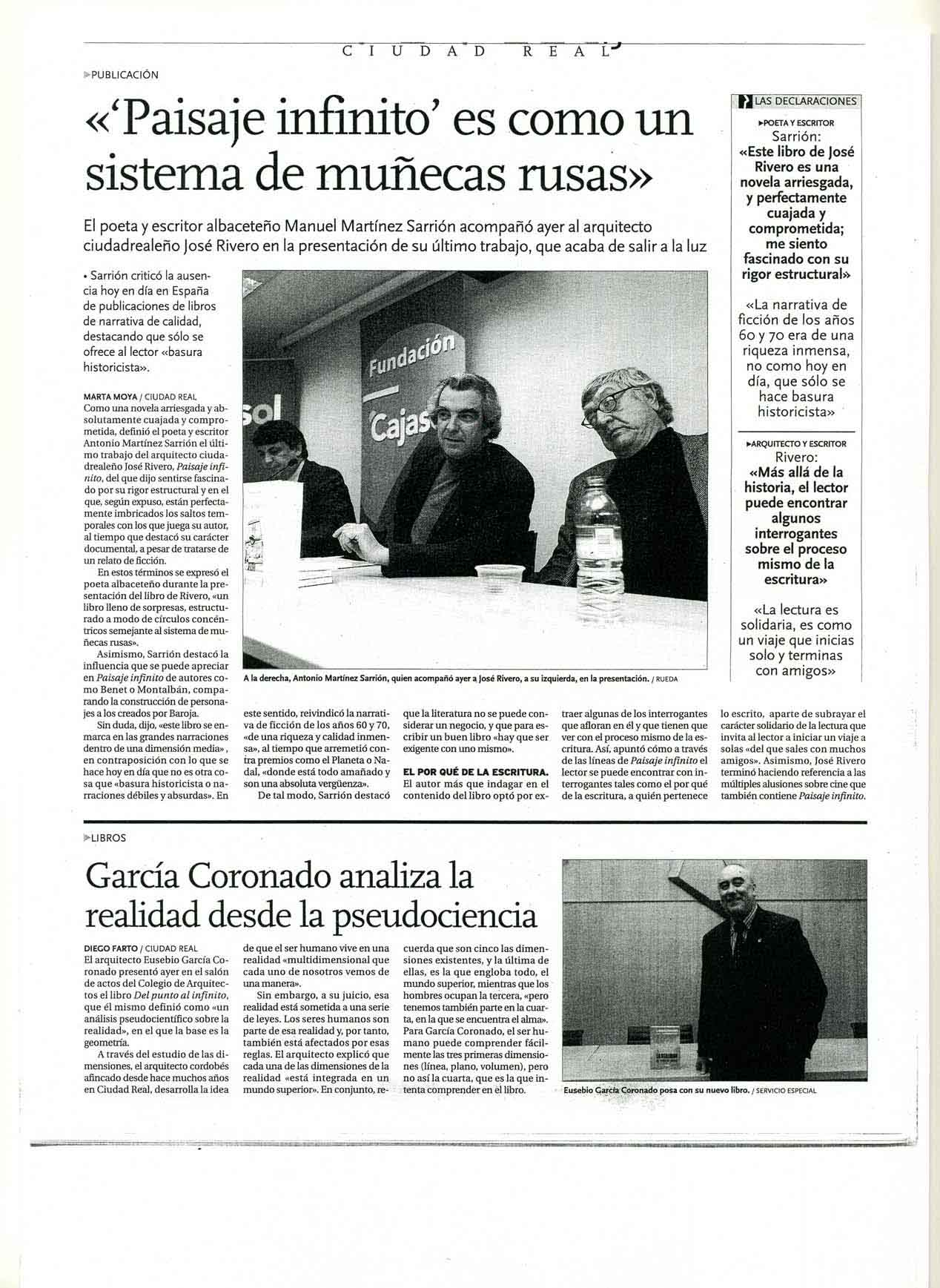 Dos presentaciones de libros: José Rivero y Eusebio Gª Coronado | |