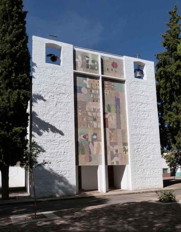 ![]() El proyecto realizado en 1955 por el Arquitecto José Luis Fernández del Amo, diseña una estructura urbana novedosa con manzanas hexagonales a tresbolillo dejando entre ellas una placeta con vegetación. El Colegio de Arquitectos ya pidió su declaración en el año 2005 junto con el resto de pueblos de colonización de nuestra provincia, como muestra de la arquitectura del movimiento moderno. |