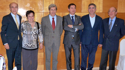 ![]() En la fotografía, Esteban Belmonte, Decano del COACM, Santiago Lucas Torres, Presidente de la FEMP y José Luis Arias, Presidente del Consejo de Aparejadores. Noticia en "La Tribuna" |